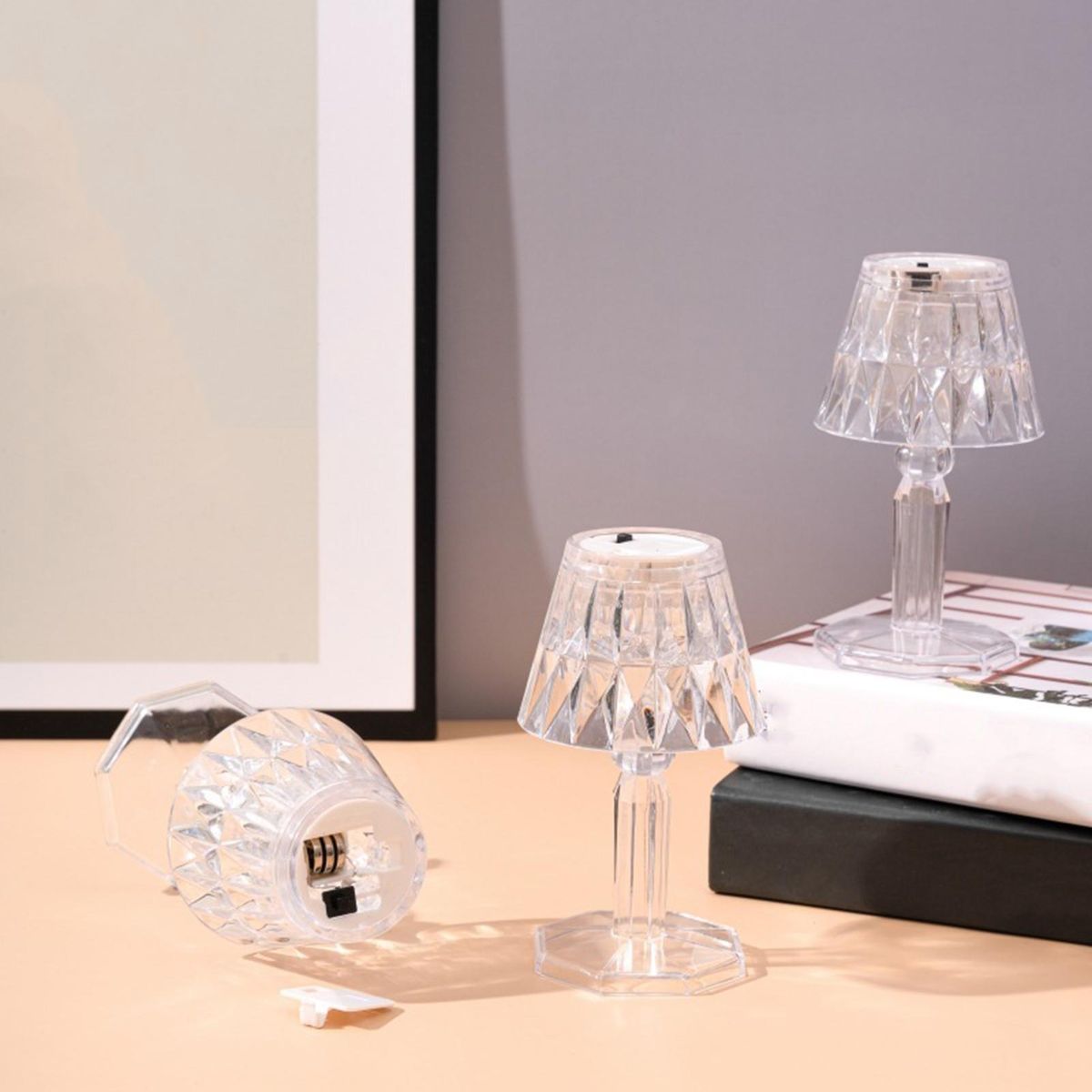 Our versatile and portable table lamp, the perfect lighting solution for any space. this cordless lamp is designed to be taken with you wherever you go, providing just the right amount of light without being overpowering. with three color-changing lights white, warm, and natural light this led table lamp is made from high-quality acrylic crystal material. the lampshade features a finely polished appearance and a crystal-like cut surface, creating a stunning design that adds warmth and elegance to any room.