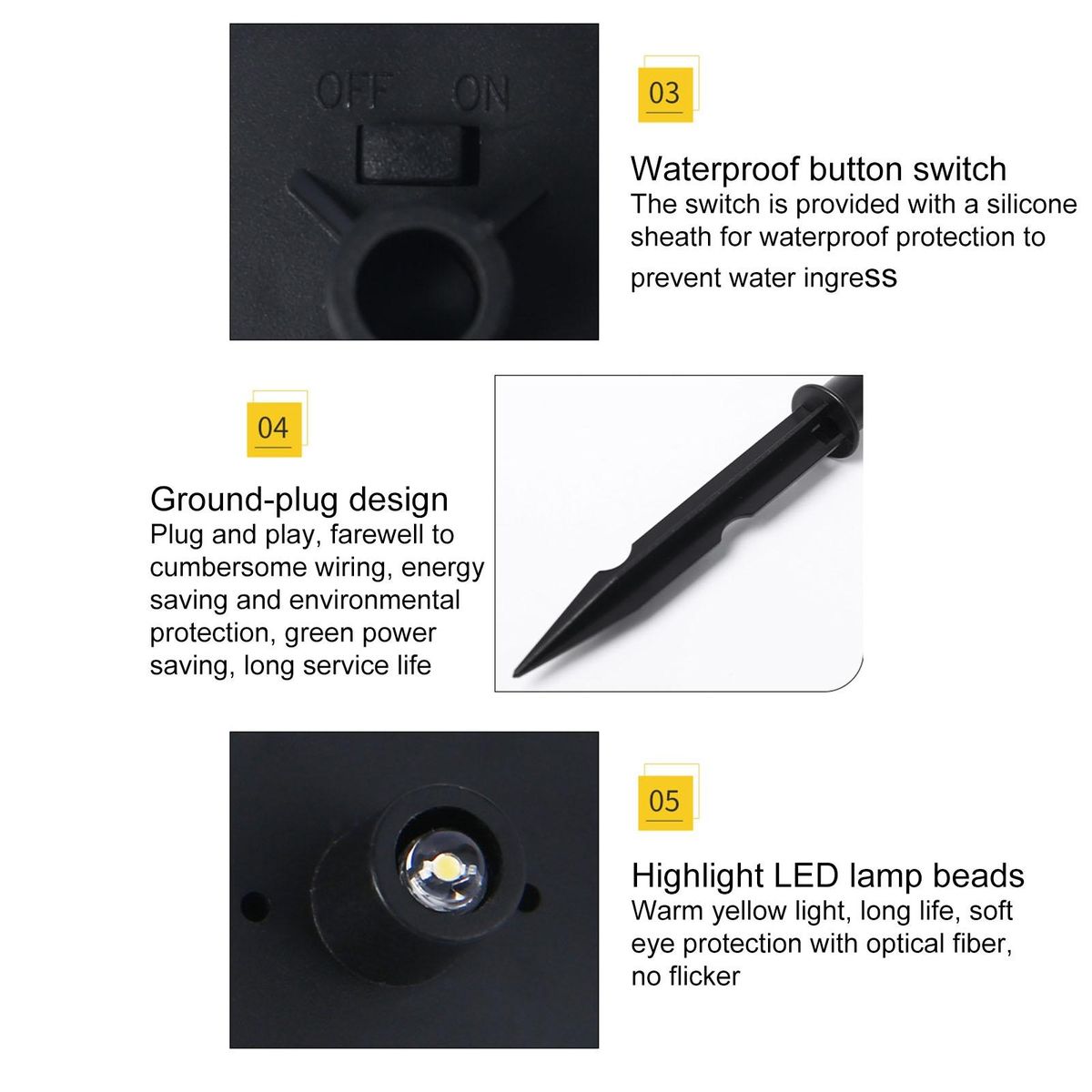 Designed with a light sensor, ourlawn lamp will automatically turn on at dusk and turn off at dawn. No need to operate the ON/OFF switch once put it into use, which brings you convenience and saves your time.