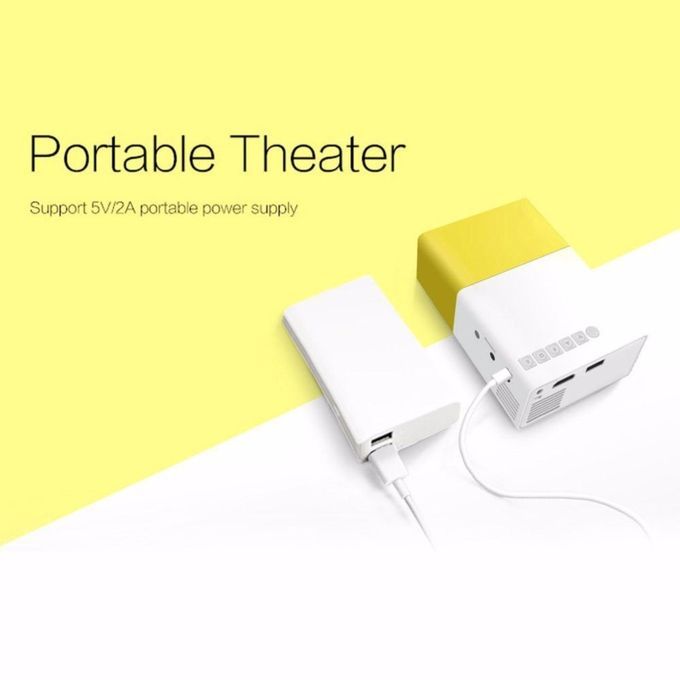 Super Mini Size like a smartphone. Best choice under $55. A Portable Theater / Cinema! With 3.5mm Audio HDMI TF Card Slot USB, Perfect for Holiday Night Entertainment. Support input 5V/2A portable power bank supply(A 5000mAh Power Bank can last 3 hours), See image:4 to know how to connect.