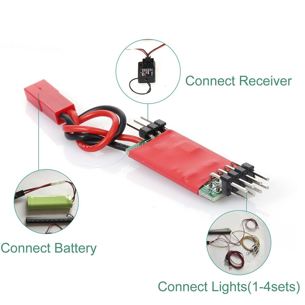 After connecting connector to the receiver third channel(CH3), you can control the light freely.