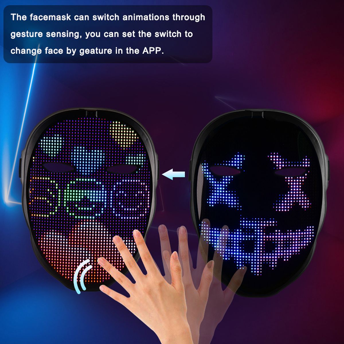 Full Color Display Mask: It's an excellent eye-catching prop. The variety of glowing patterns makes you the center of any party all night long! Everyone will be attracted to you!