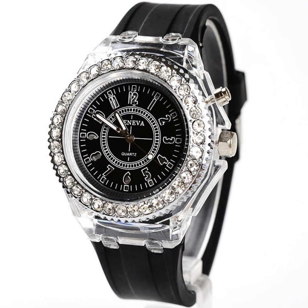 watches will light on dark place at night time if you need to see, you can click, it flashed coloured lights (about 6 to 7 colors in fashion, It is a good gift for relatives and friends who you love. Fashionable, very charming for all occasions. Special dial design attracts much attention from buyers. Amazing view watches. Precise time and keep good time. It's worth to buy for cheap and having a good quality. Color may not appear as exactly as in real life.