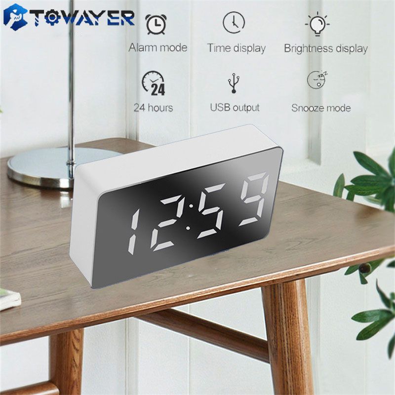 The brightness of LED display will be 50% darker from 19:00 P.M. to 6:00 A.M, it will not disturb your sleeping, which will save energy and protect your eyes. You can set 3 sets of alarm time to wake you up every day. You can get more minutes of lazy bed time, and the alarm clock will remind you again. Large 3.1in LED display, mirror surface, clear and easy to read. It is not only a clock, but also a fashionable art decoration, perfect for places, such as, bedroom, living room, kitchen, car, office and so on. Good quality plastic, anti , practical material for long time use. The product needs to be plugged into the USB cable to be usedSpecifications:Item name: Digital Alarm Clock Materials:Plastic Size: 7.2*4*1.8cmNote:- There might be little error of size for manual measurement. - The colors deviation might differ due to different monitor settings, please kindly understand.Package includes:1 x Digital Alarm Clock 1 x USB cableAnd there have three notes:1. If the screen of the product you received is scratched, please remove the protective film. 2. If your screen suddenly goes off, please check if you have set "oN Sd" This mode is a power saving mode, it will automatically go off and automatically light up. Please set back to "-- Sd" mode, this mode will always show on the LED 3. If you receive the product and the USB cable and ADAPTOR still don't work, please check whether it is 5V. If none of the above probl can be resolved, please contact me as soon as possible, instead of opening disputes and leaving bad comments. We will do our best to solve the problem.Note: This product uses only USB cable to work, the battery plays a time memory function? "