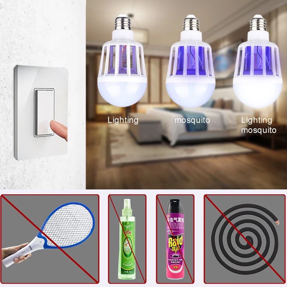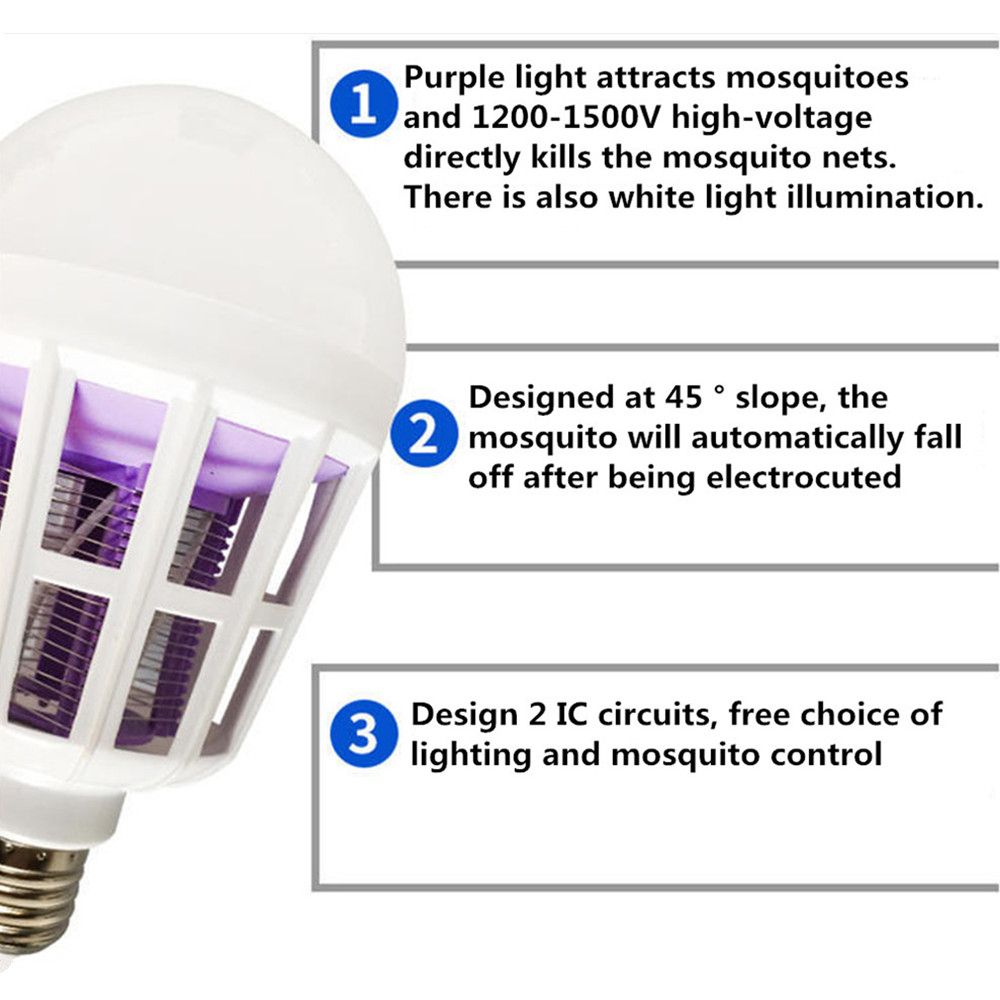 LED lighting anti-mosquito dual-use, energy-saving mute environmental protection Scene versatile, easy to use, standard E27 screws, suitable for a variety of lamp head Built-in high-brightness chip, the light is more uniform, the lighting is more durable Highly transparent PC lampshade, good transmittance, light uniformity and translucency