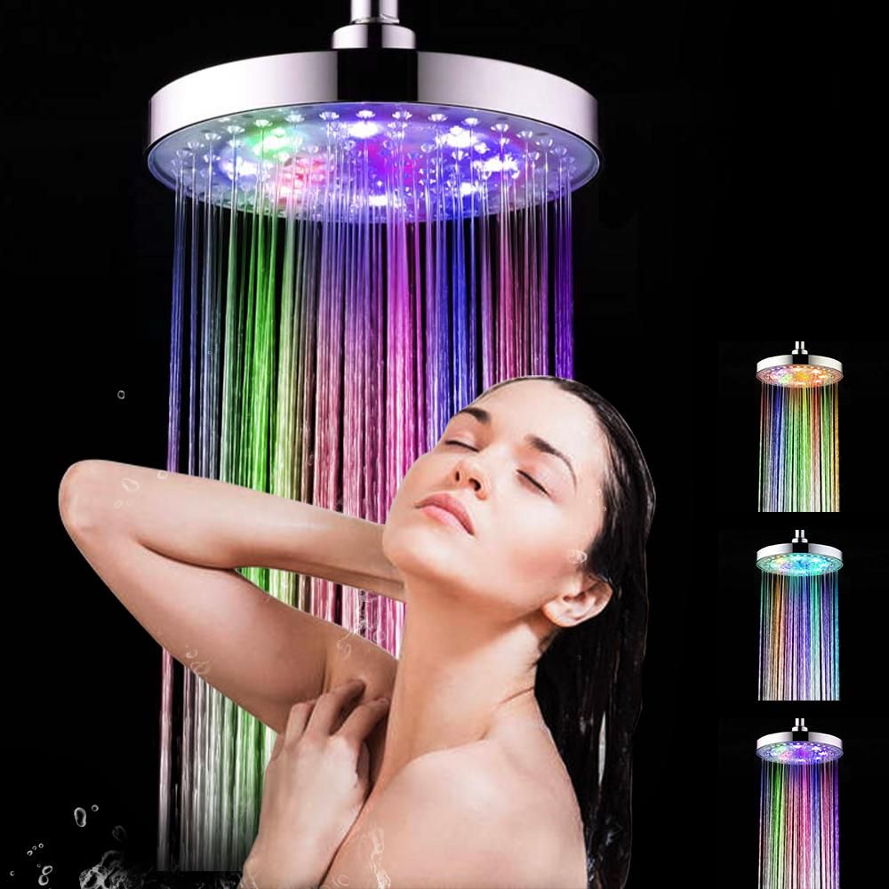 Buy LED Rainfall Shower Head 8inch Round Shower Head Multiple Colors Automatically Color-Changing Showerhead for Bathroom in Nigeria