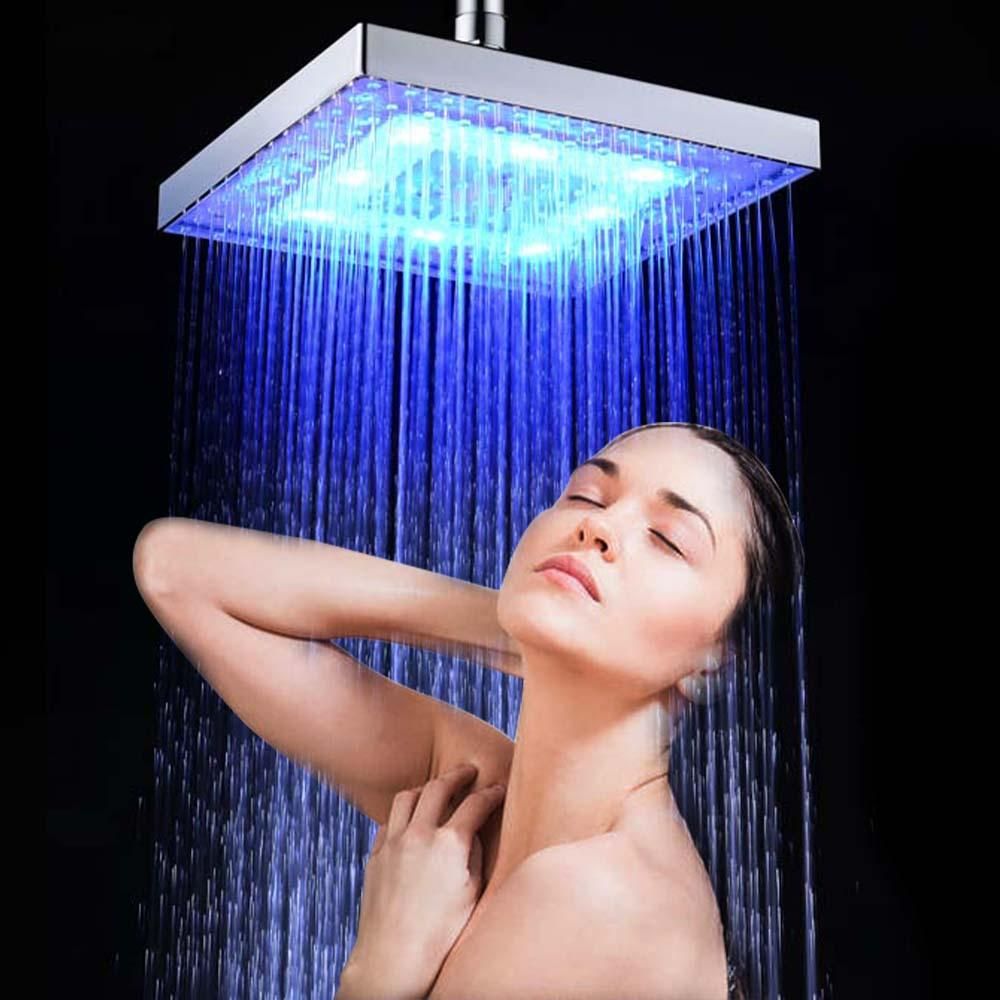 Buy LED Rainfall Shower Head Square Shower Head Automatically RGB Color-Changing Temperature Sensor Showerhead for Bathroom in Nigeria