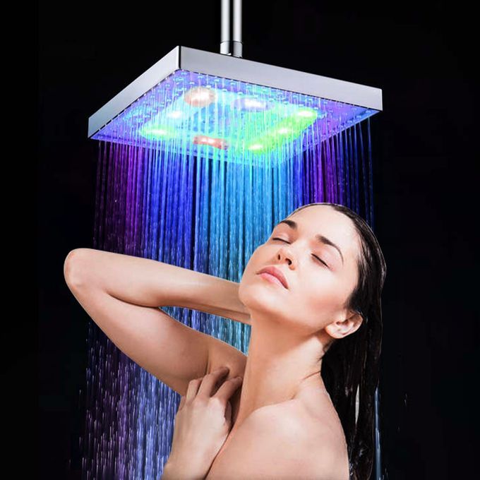 This 8-in square rainfall shower head with LED lights can flows out of the water with gorgeous LED light glowing. It is completely powered by water flow, no need for additional batteries or sources. The LED shower head can make your shower room become a colorful dream world, and make monotonous bathing fun and romantic.