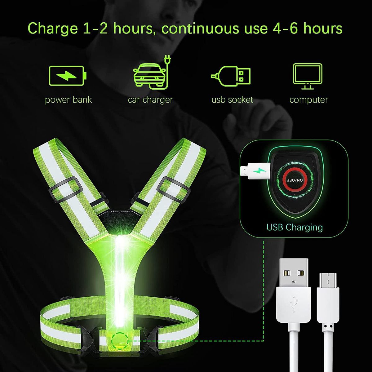 [USB Rechargable]Different from normal reflective vest, we built in the LED flash light. Can be recharged by USB cable to realize cycle use, convenient and save money. Charging time:1-2 hours; Lighting time:4-6 hours. Do not worry the environment in dark and no light to reflect. Note: After receiving the LED reflective vest, please fully charge it before use.