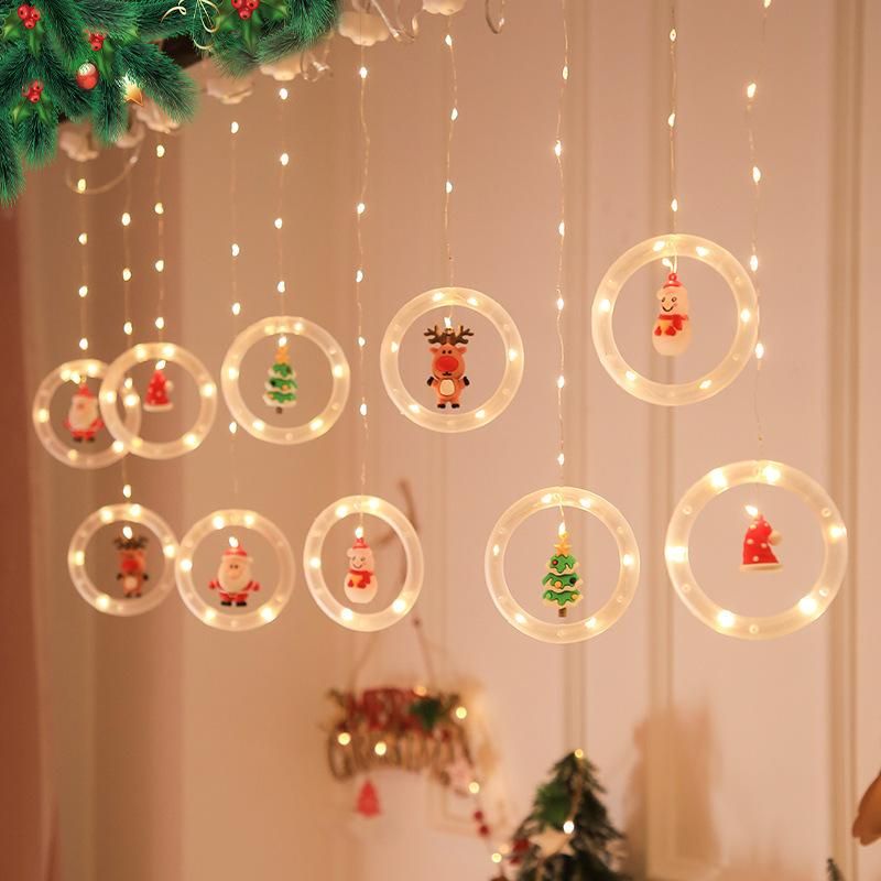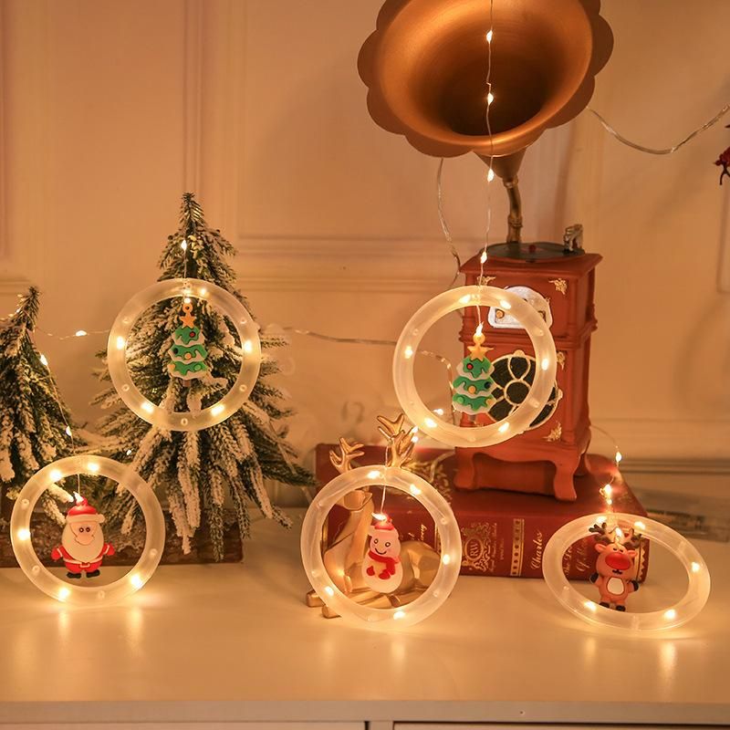 Buy LED ring Christmas curtain lights festive decoration elk Santa Claus snowman pendant window decoration flashing lights Warm White USB always on with flashing bubble / comes with hook for easy hanging in Nigeria
