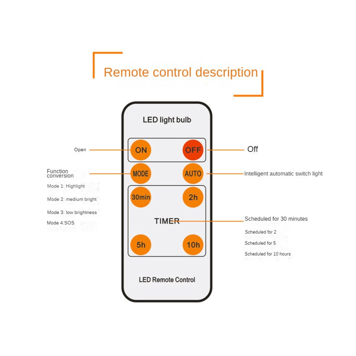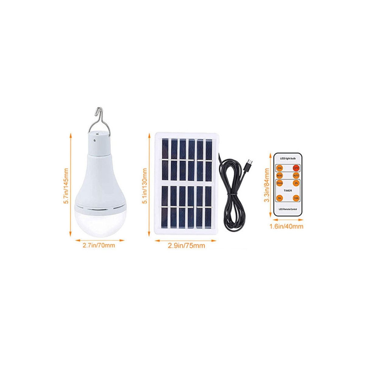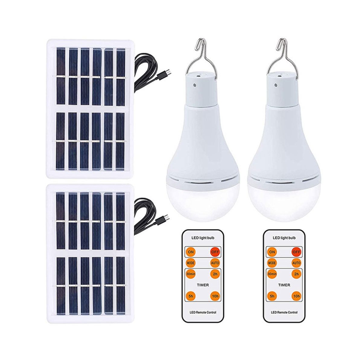 Timer Set: Using the remote controller, you can choose from four timer settings: 30 minutes, 2 hours, 5 hours, and 10 hours. The bulb will automatically turn off after the chosen time period. Before use, please charge the solar bulb. The control distance by remote is 6-8 m.