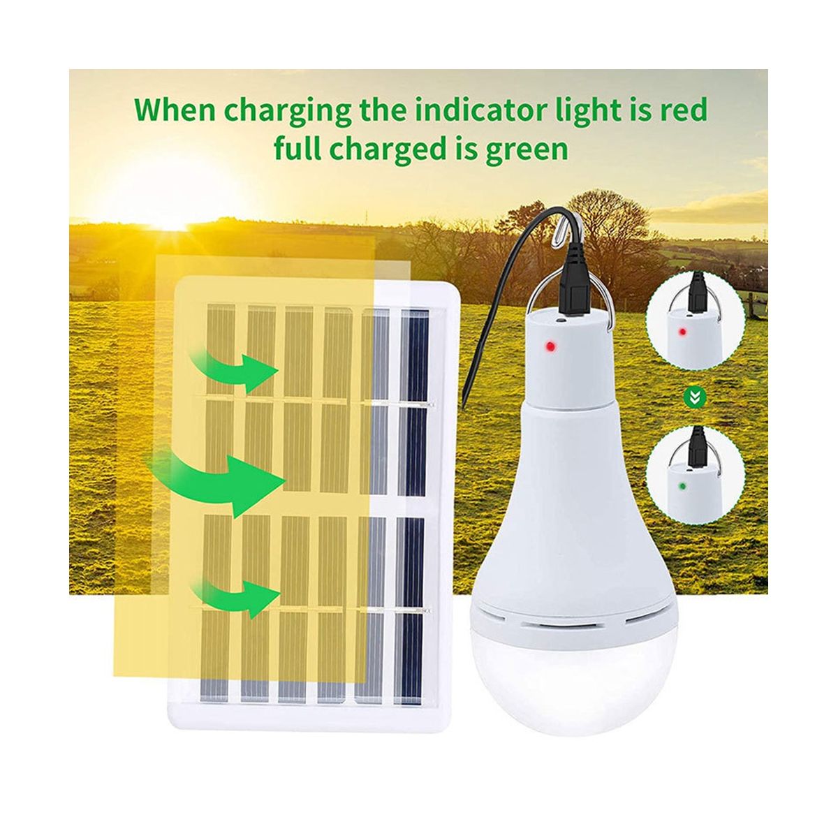 [Solar/USB Charge]With 9W Light Bulbs/1.2W solar panel, this solar light bulb can absorb more sunlight in the daytime, Charge fast and works longer. Support to charge by USB cable, if there is no enough sunlight in cloudy and .