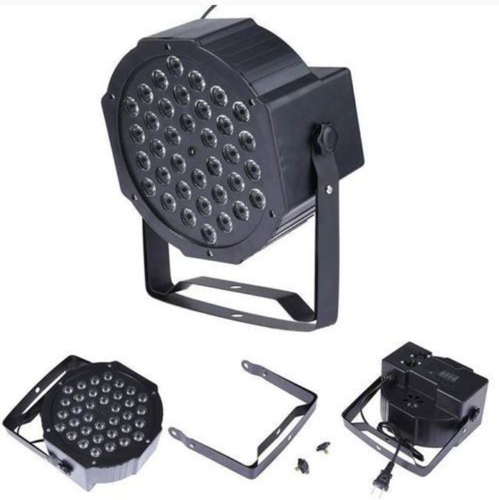 【Colored Stage Lights】the 36 bulbs RGB flat stage par light is a DMX-512 controllable; full RGB color mixing light it is made up of high-efficiency LEDs. You can change the color combination anytime with up/down button Various Modes】There are 9 function modes to fit for your need (Static color, Color combination, Color changes, Color fade, DMX, Master-Slave, Sound Activated, Jump Mode, Strobe Mode).【Simple to Use】Super bright led uplights can be easy to set up and controlled by the remote control; You can connect it with DMX system by DMX cables, then manipulate it by remote control. The instruction manual described how to use this product in detail; it's easy to use it no matter you are the profession or new.【Easy Installed Design】Dual handle design; you can hang the lights on anywherTotal power 120WattKNOWN FOR IT EXCELLENT PERFORMANCE ON STAGE , EVENTS, CELEBRATION, PARTY, CLUB,DJ ETCDURABLE AND LONGLASTING