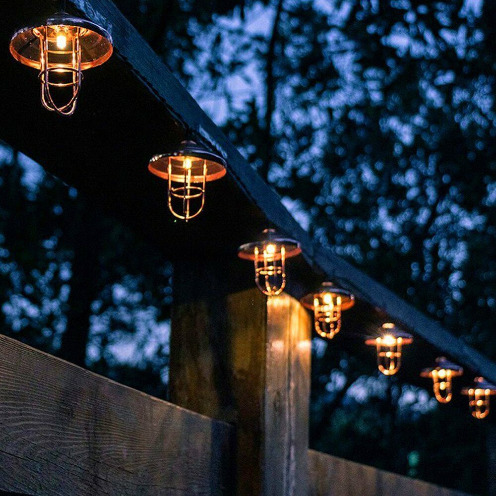 10 meter long with 20 lamp holders filament bulbs of 4 watts each should be suitable. Is waterproof which can last for years under sun and rain.