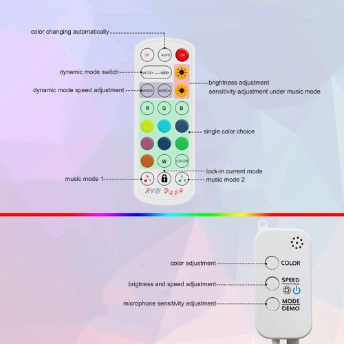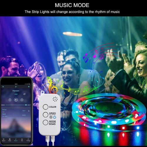 The BT strip light has a smart music mode, adjustable to your microphone, lights color will change with the music beats or your microphone.