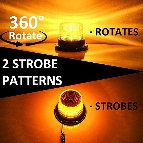 - Upgrade Modes with 3Rotate Coverage- The amber emergeny lights have 2 patterns for Strobe and Rotate. Press irulating swith repeatedly for power off. Easy to use, 2nd swith to hange between different patterns.