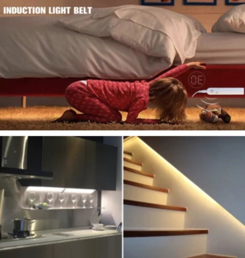 1X LED Under Cabinet Light LED Strip Led Lamp With Wireless PIR Motion Sensor USB Port Light Kitchen Stairs Wardrobe Bed Side Light