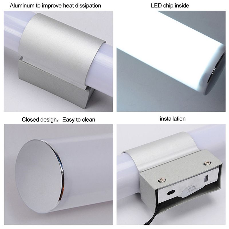Item Name: led mirror light waterproof IP grade: waterproof Body color: and silver Emitting Color: (6000-6500K) or warm (2700-3000K) Input voltage: AC85-265V Output power: 12W/16W/22W View angle: 360 degrees Length : 250mm or 400mm or 550mm Long life: >50,000 hours Package: 1 pcs LED light