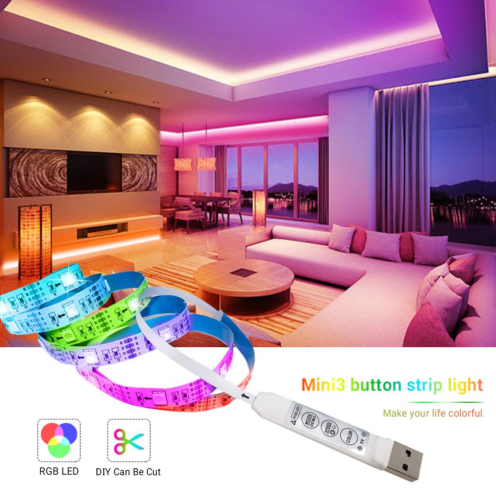 Mini 3 button strip light, press different button to achieve its function in mode/color/speed.