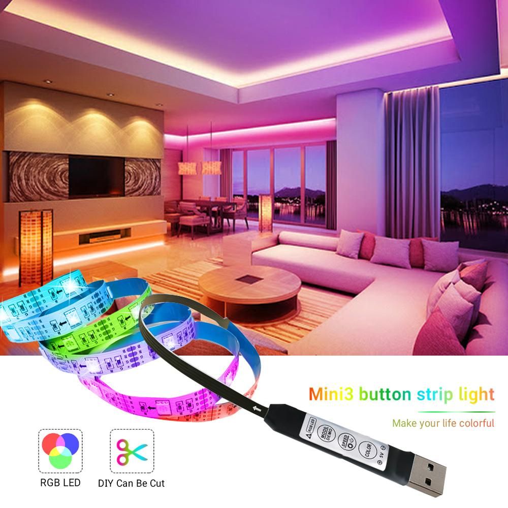 Buy LEDs Strip Light Set USB RGB Flexible LEDs Rope Lighting Mini 3 Button Cuttable Self-adhesive LEDs Strips for Home Party Decoration Restaurant KTV Club DIY in Nigeria