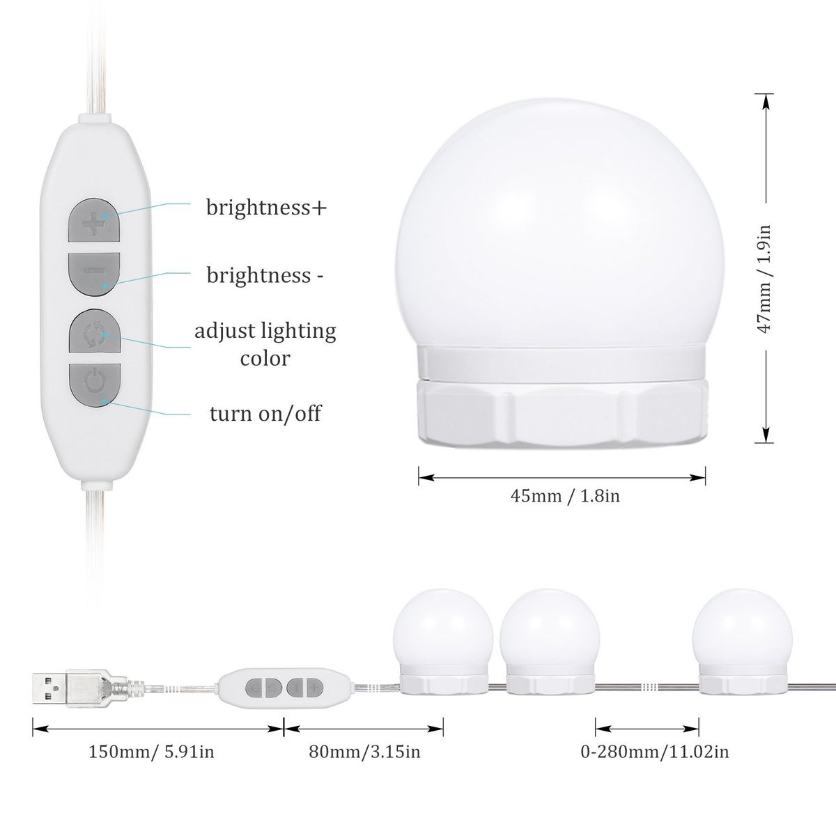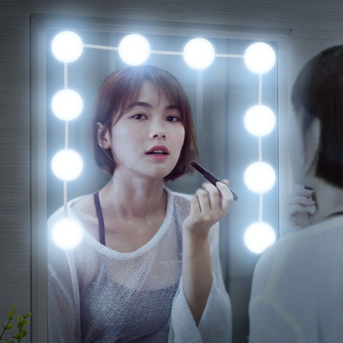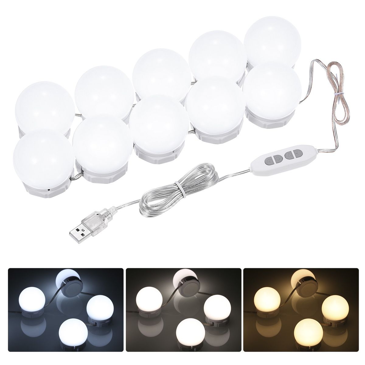 10 bulbs mirror light with 3 color modes and dimmable 10 brightness levels, allowing you to make-up without hurting or posing problems for your eyes.