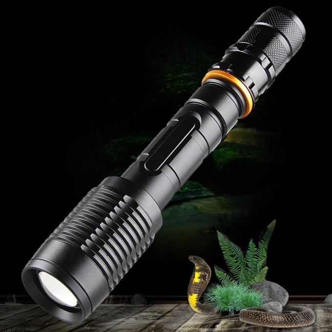 Internal wiring applies the high-efficiency reinforcementcircuit, working voltageis ample and can utilize the batteries tothe greatest extentWaterproofing Design (Not for Diving)Wide beam, great for pathway illumination, intense spotpenetrates deep into darknessSuitable for camping, travel and other outdoor activitiesSuper Bright, bezel strike Battlements for increasedself-defense Blinding effect