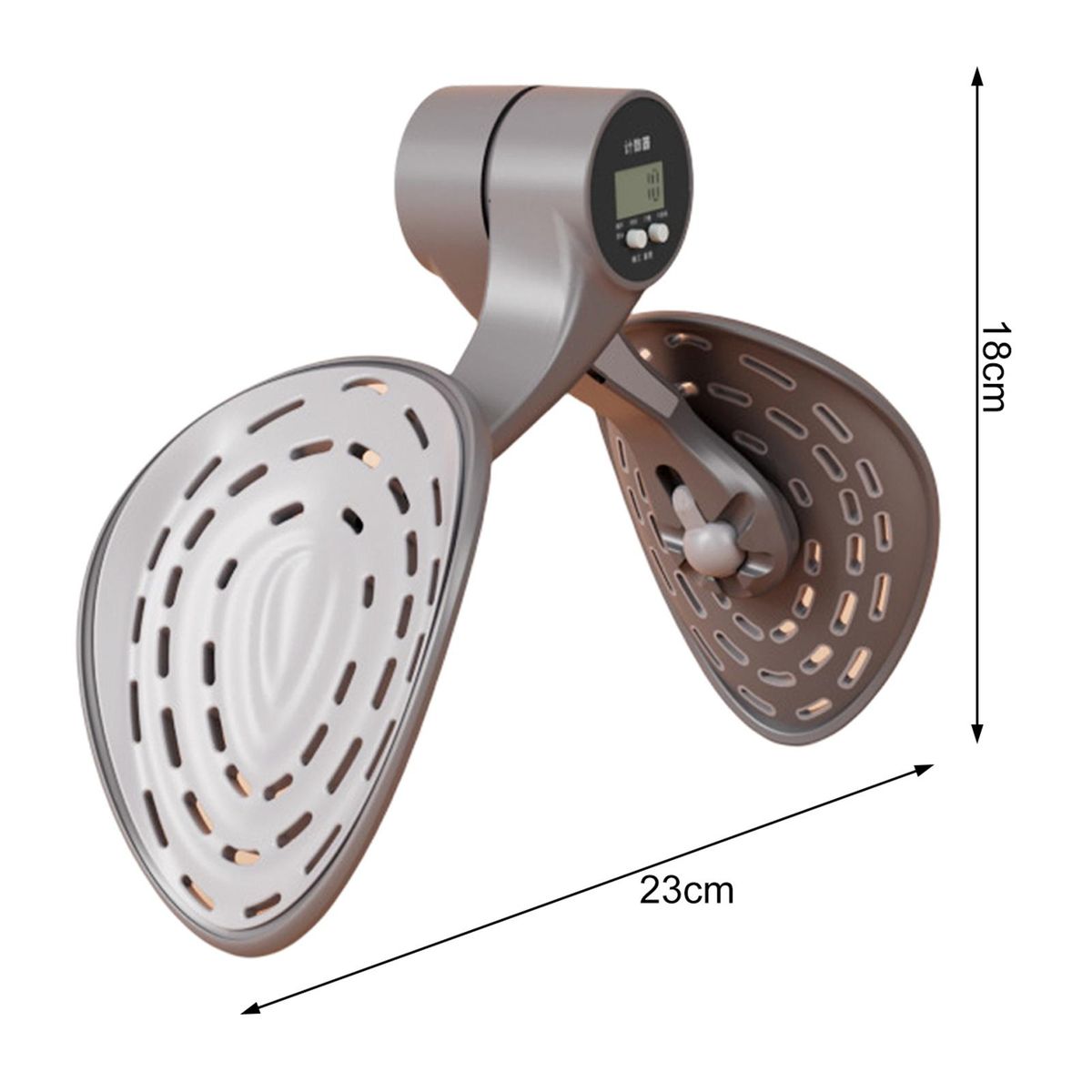 The length of this leg clamp exerciser is 23cm and width is 18cm.