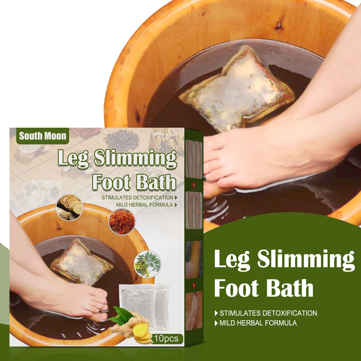 The foot bath bag contains mild herbal formula to effectively increase blood circulation, stimulate detoxification and reduce leg edema for leg slimming effect.