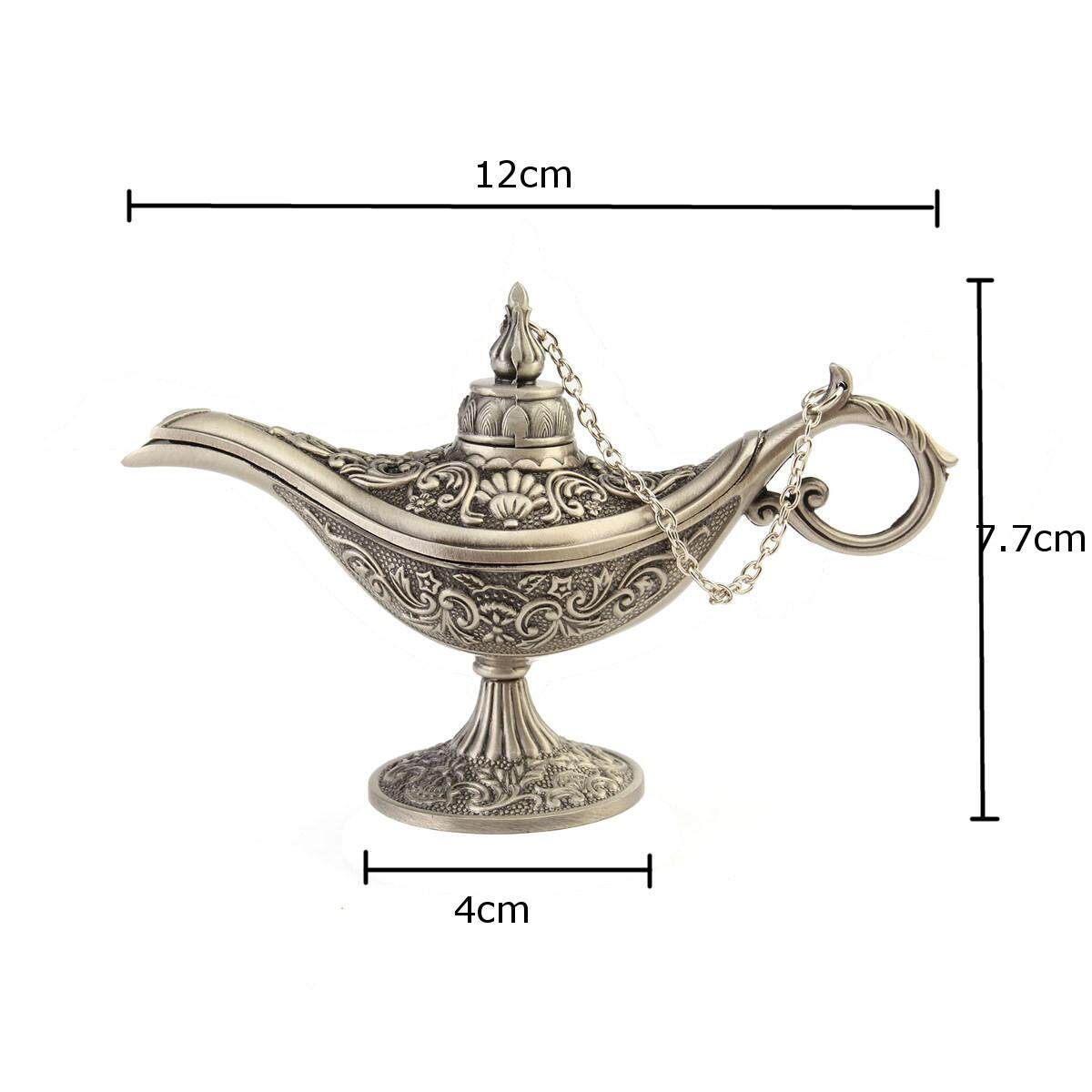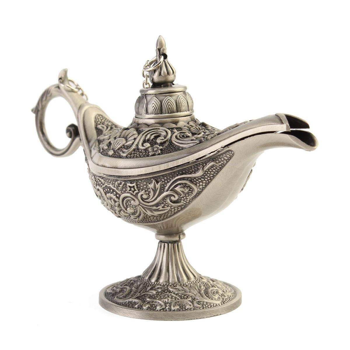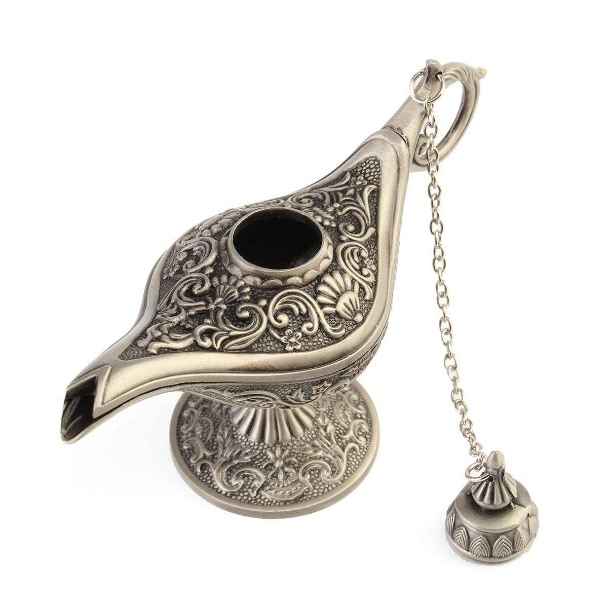 HIighqualityandbrandnew.. CanbeaHolidayDecoration&Gift. Beautifuldesigncanbeanicedecorationforyourhome. SuitforHalloween,Christmas,Decorationpurposestouse. Type:AladdinMagicGenieLight :Silver Material:Alloy Size:App12*4.3*7.7cm(L*W*H) Packagesize:App12.5*7*5cm(L*W*H) Weight:App103g Package: 1xAladdinMagicGenieLight PLEASENOTTHATDuetolightingeffects,'sbrightness/contrastsettingsetc,