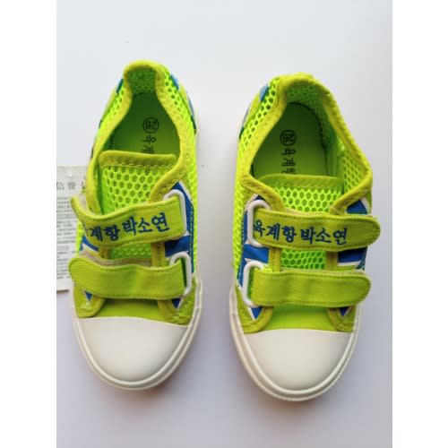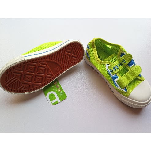 Unique bright colored , lemon green sneaker for boy. Thick rubber sole and net body.