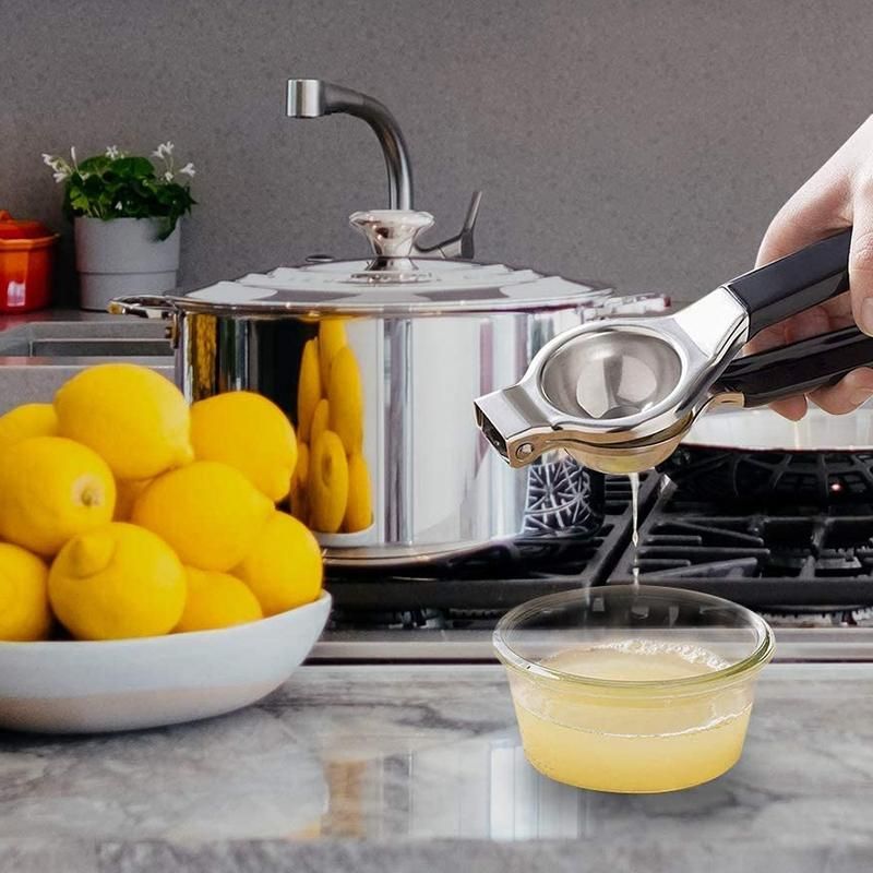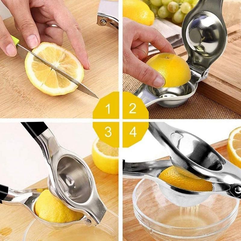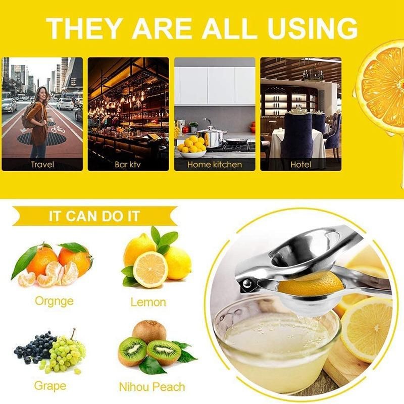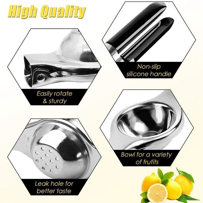 HIGH QUALITY - Lemon Squeezer is made of durable stainless steel construction, durable and will not rust. Manually squeeze lemons, limes and other small citrus fruits to make your favorite juice anytime, anywhere. High quality stainless steel to prevent bacterial growth for food safety.