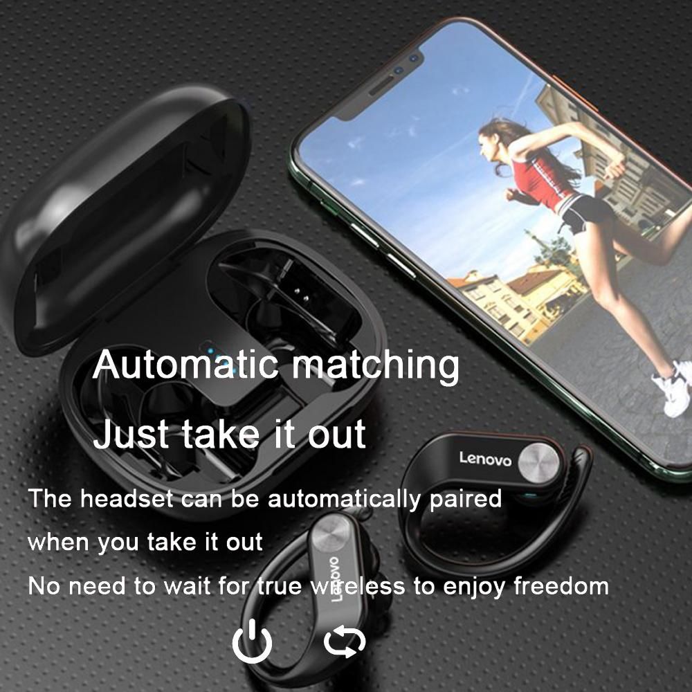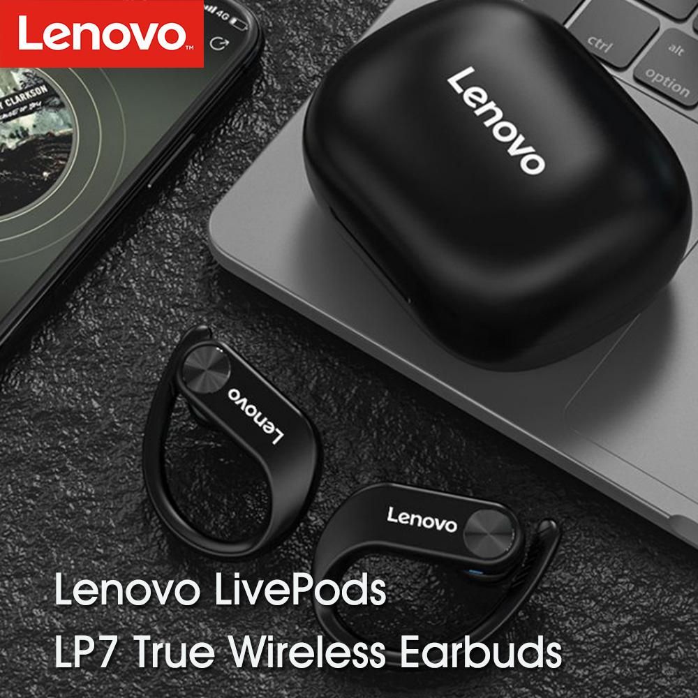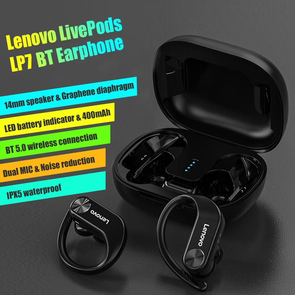 Buy Lenovo LivePods LP7 Ear-hook Headphones BT 5.0 Wireless Earphones with 14mm Driver/Noise Canceling MIC/IPX5 Waterproof/400mAh & LED Power Display Handfree Sport Headsets with MIC for Gym Running Compatible with iOS Android in Nigeria