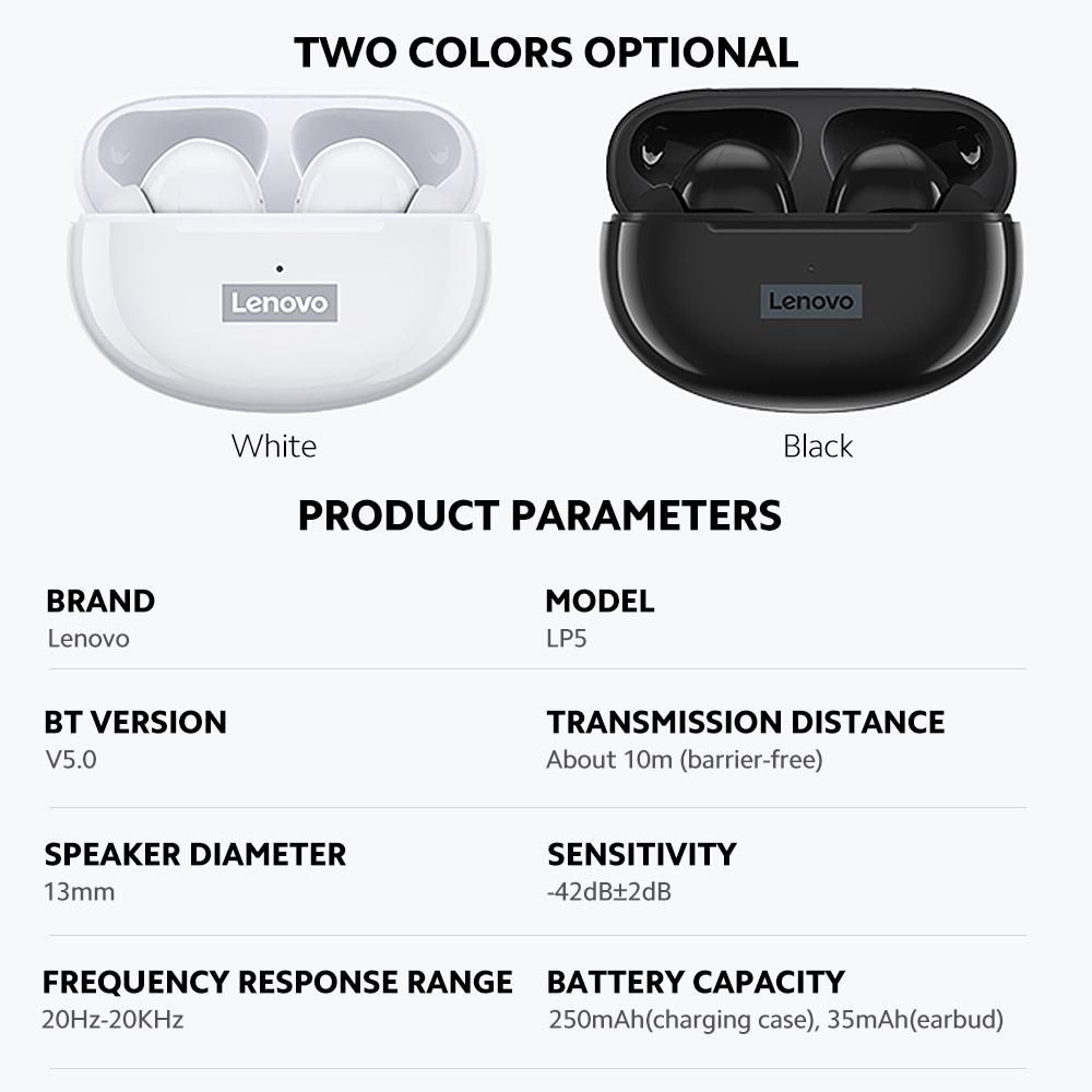 Buy Lenovo LP5 Wireless BT5.0 Headphones In-ear Sports Earbuds with 13mm Moving Coil Unit Long Endurance Time White in Nigeria