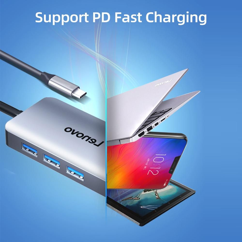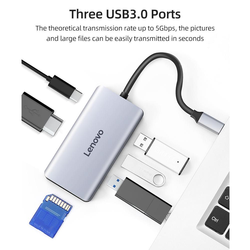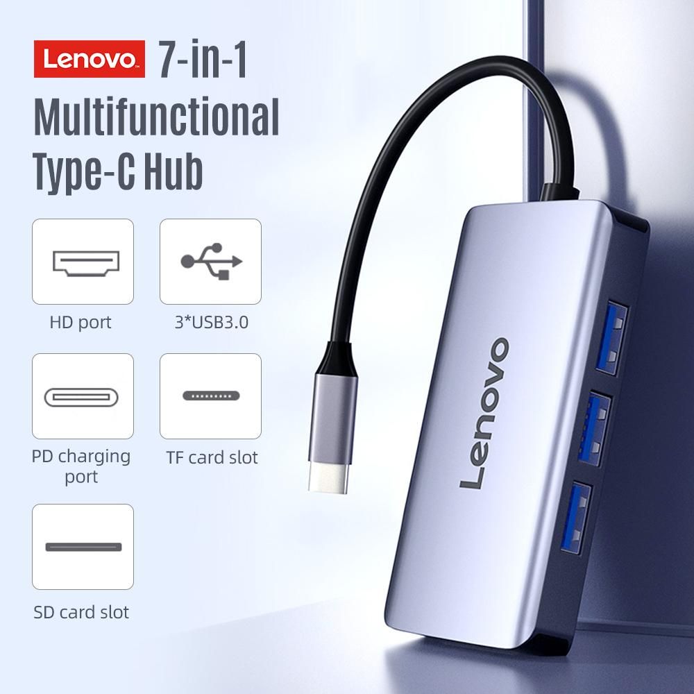 Buy Lenovo LX0806G Type-C Hub 7-in-1 Type-C Converter Aluminum Alloy Shell HD+PD Charging Port+3*USB3.0+SD&TF Card Slots in Nigeria