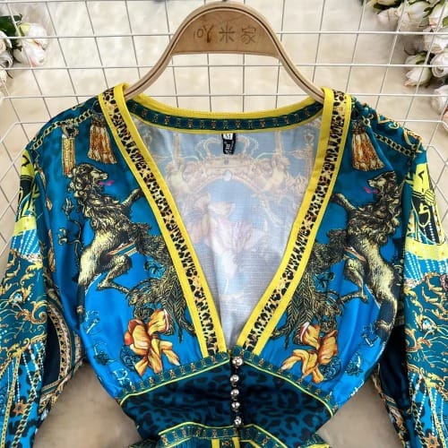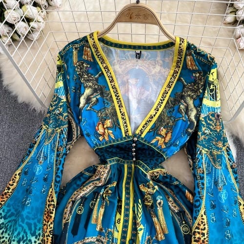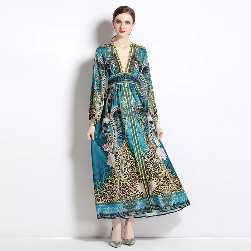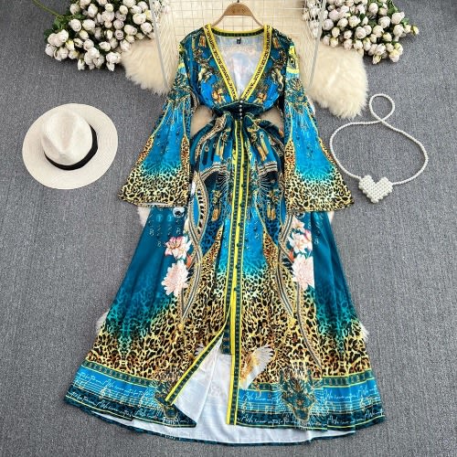 Buy Leopard Print Maxi Dress - Women's Deep V Neck - Single-breasted Dress in Nigeria