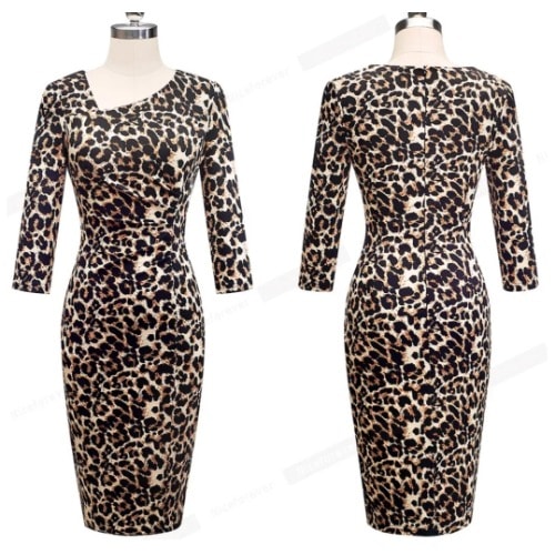 Buy Leopard Print Office Bodycon Dress Long Sleeve in Nigeria