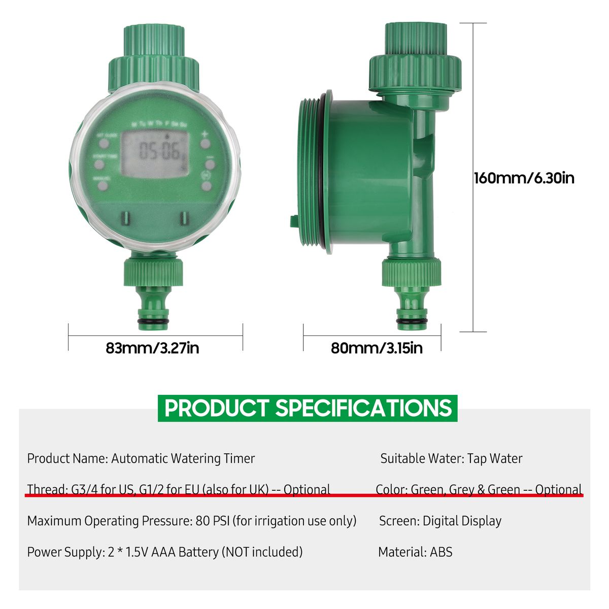 Features:Automatic watering timer can save water and time, which is eco-friendly and efficient. It can be widely used in gardens, balconies, courtyards, lawns, greenhouses, etc.