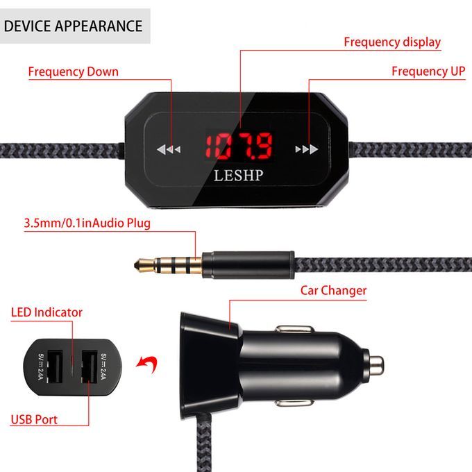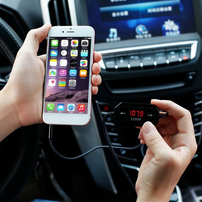 LESHP Wireless FM Transmitter Radio Car Kit For Smart Phones 3.5mm Audio Plug Black