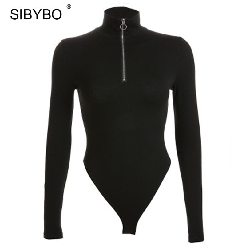 1X Letter Long Sleeve Sexy Women Bodysuit Autumn Winter Turtleneck Zipper Rompers Womens Jumpsuit Casual Overalls