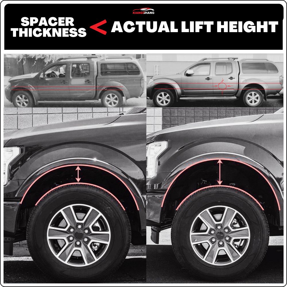 1.Can use these with your standard suspension or with aftermarket suspension to help level out the typical nose down appearance.2.No Corroding, rusting, breaking, or road vibration.3.Provide excellent wheel stability and security.4.Offer increased ground clearance without the hale of a long and drawn out installation proce.5.No modification or ing is required. Easy to install with basic hand tools.6.Excellent material and superb technology of production.7.Lift up your car efficiently and enhance shock absorption.8.Safe and stable performance, and make your driving more comfortable.