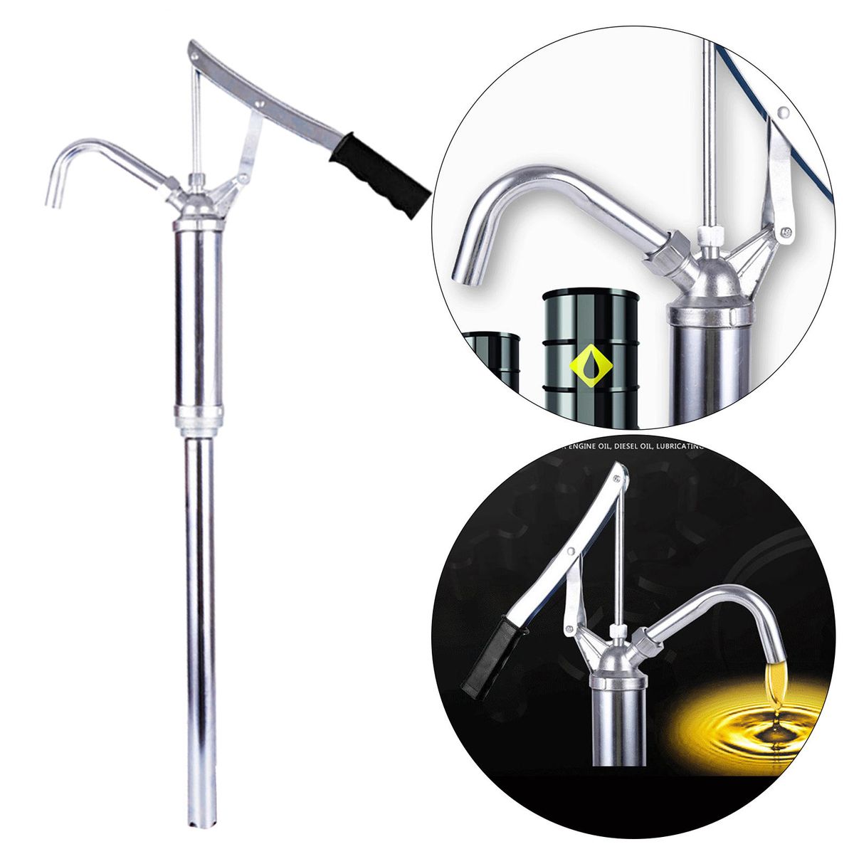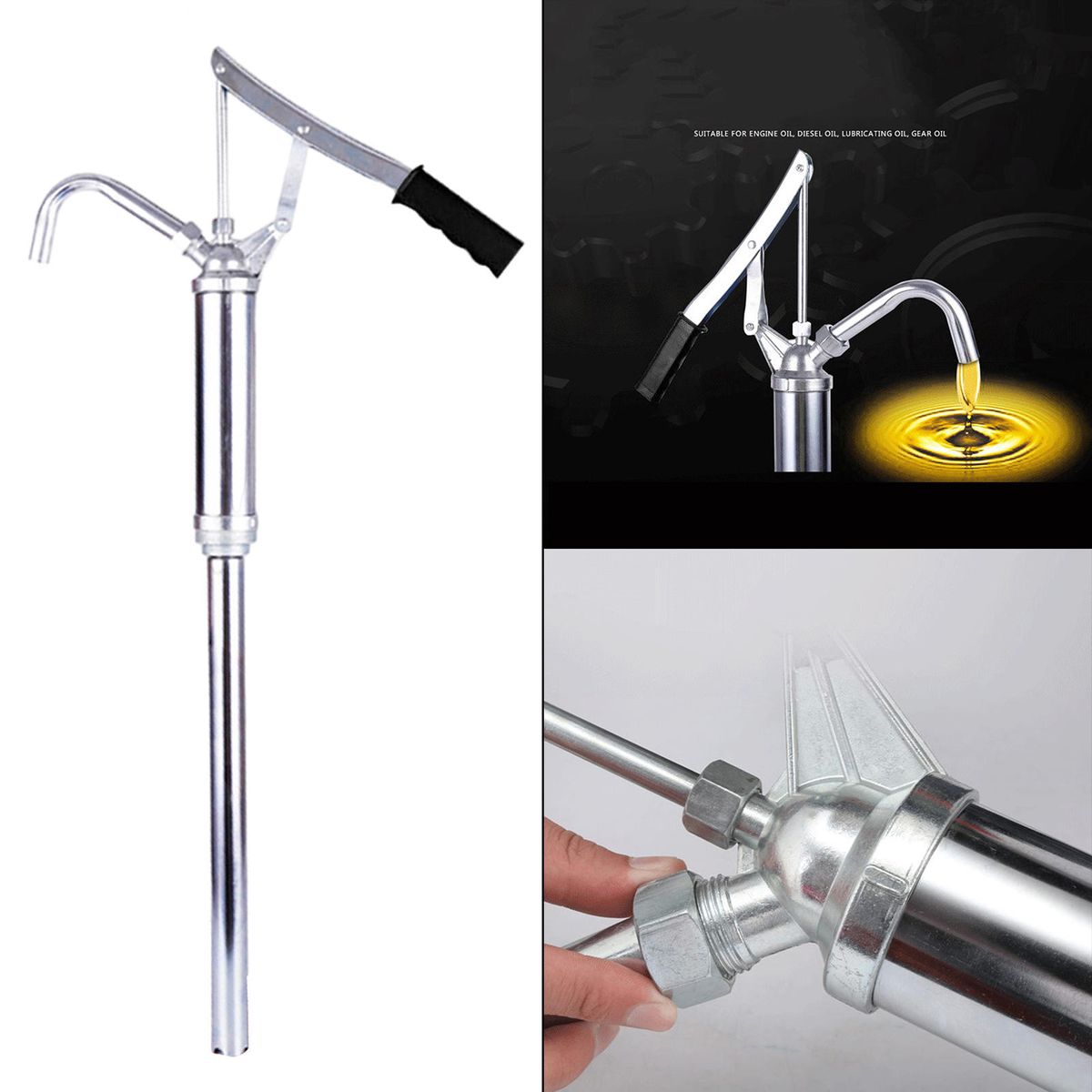 With large suction, it is suitable for oils such as engine oil, oil, lubricating oil, gear oil, etc, fit for oil drums of various specifications.The PE piston has high sealing performance to ensure the safety of oil extraction and the thickened oil pipe can ensure the safety of oil extraction without oil leakage. The non-slip handle accords with the , saves time and effort, and has a comfortable grip, and the longer lever handle ensures a firm grip and increased leverage.It has chrome-plated surface, strong and durable which is not easy to rust.The whole is divided, portable, easy to install.