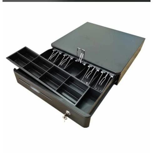 Looking for a Cash drawer for your POS system this register features heavy-duty metal construction and includes a key lock as well as an RJ12 connector. The drawer's front panel features a slip Deposit slot and you can open the drawer with a key or via a 24V signal through the 6-pin (RJ12) connector. It's also Compatible with Select Epson printers! This Cash drawer features removable bill and coin trays with adjustable dividers that let you customize it for the denominations you need most. The bill clips are spring-loaded to keep bills securely in place, but allow for easy removal as well. Keep your money locked up securely, get yours today! Order now.