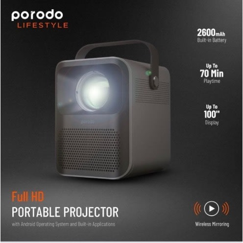 Porodo Lifestyle Full HD Portable Projector comes with a 2600mAh battery and it is compatible with the Android operating system which can be compatible with the application then you can share your phone screen through this portable projector. It can display up to 100 inches. You can find the wireless mirroring opportunity in this portable projector thus it has 1 GB DDR3 RAM. You can find three kinds of ports in this projector which are USB, HDMI, 3.5 AUX. you can use this projector for up to 70 min playtime.