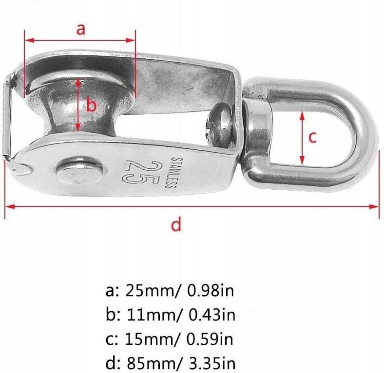 - 5 Pcs Lifting Single Pulley Block Charging 330 Ibs, 304 Stainless Steel Heavy Duty Single Pulley Lifting Rope Pulley M25.