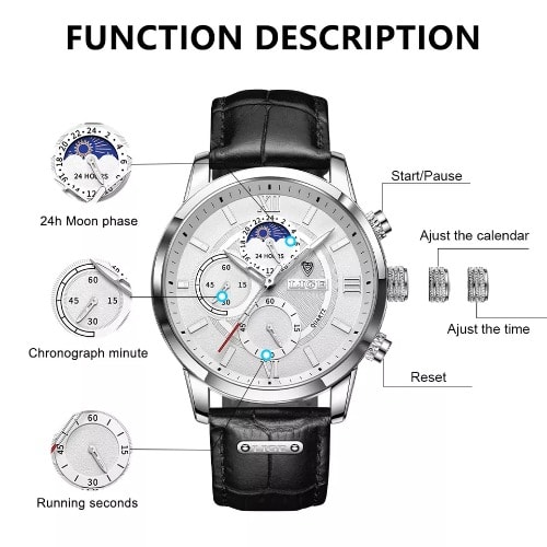 Buy Lige Leather Waterproof Luminous Quartz Watch - Black in Nigeria