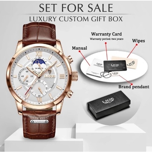 Buy Lige Men 2021 Leather Waterproof Luminous Top Brand Quartz Watch in Nigeria