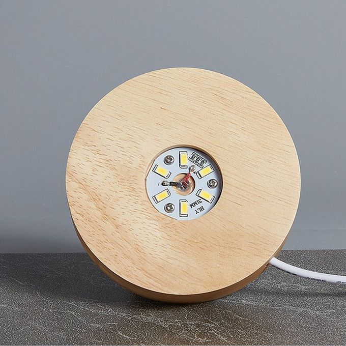 Spe ifi ations: Size: Diameter: 100mm, Height: 20mm Material: rubber wood Light sour e: Shape: round Power su ly: usb