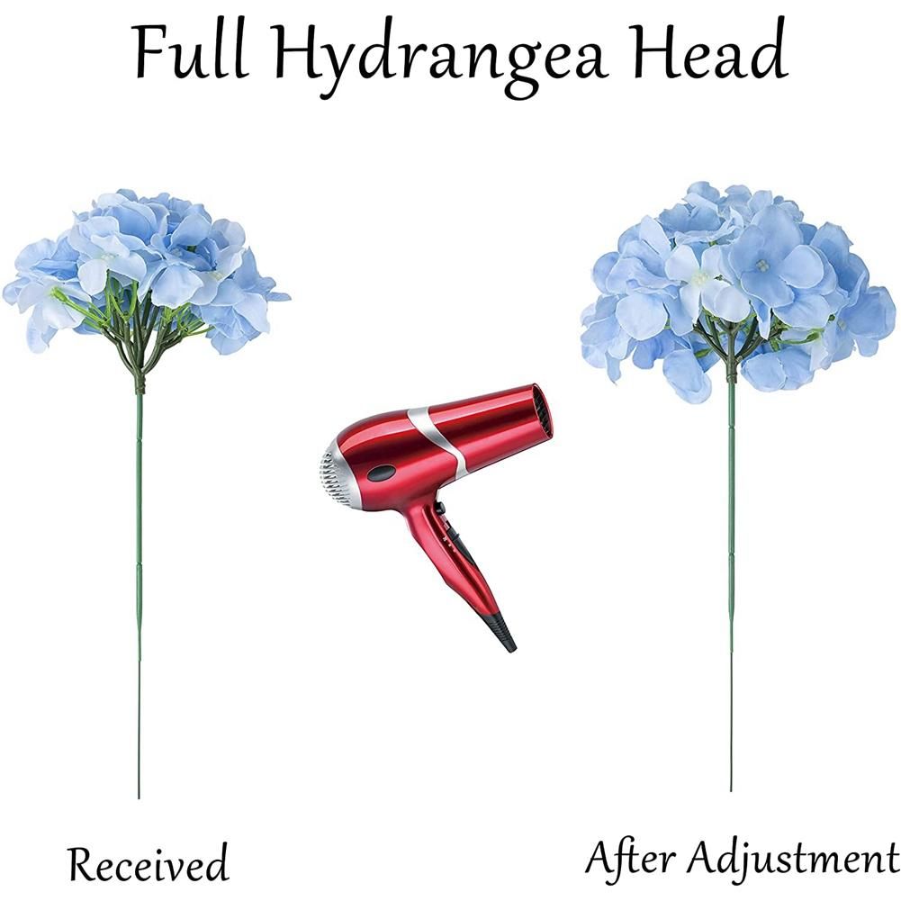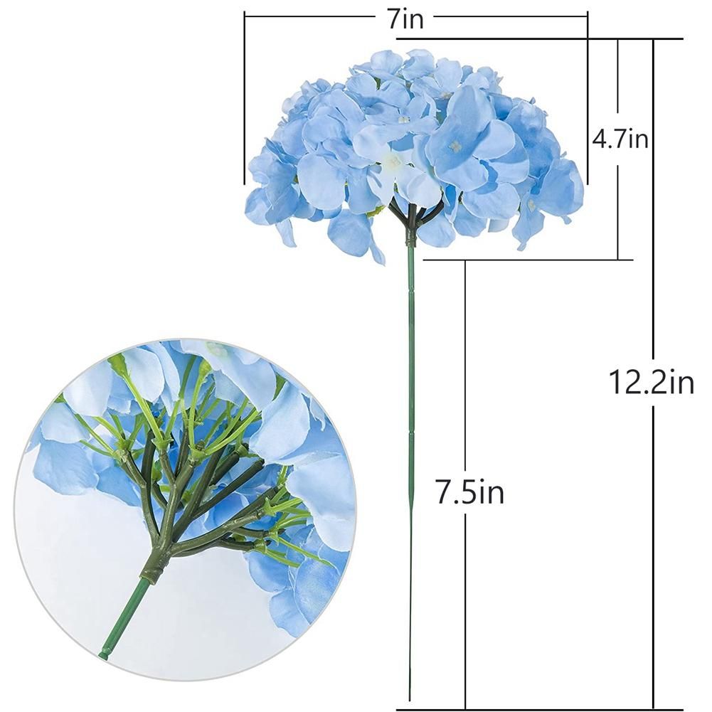 Detailed Information About The Product:1. Size: Hydrangea heads are approx. 7 inches in diameter ,the stems are 7.5 inches long, the hydrangea flowers are full and beautiful, 54 petals in each bloom,