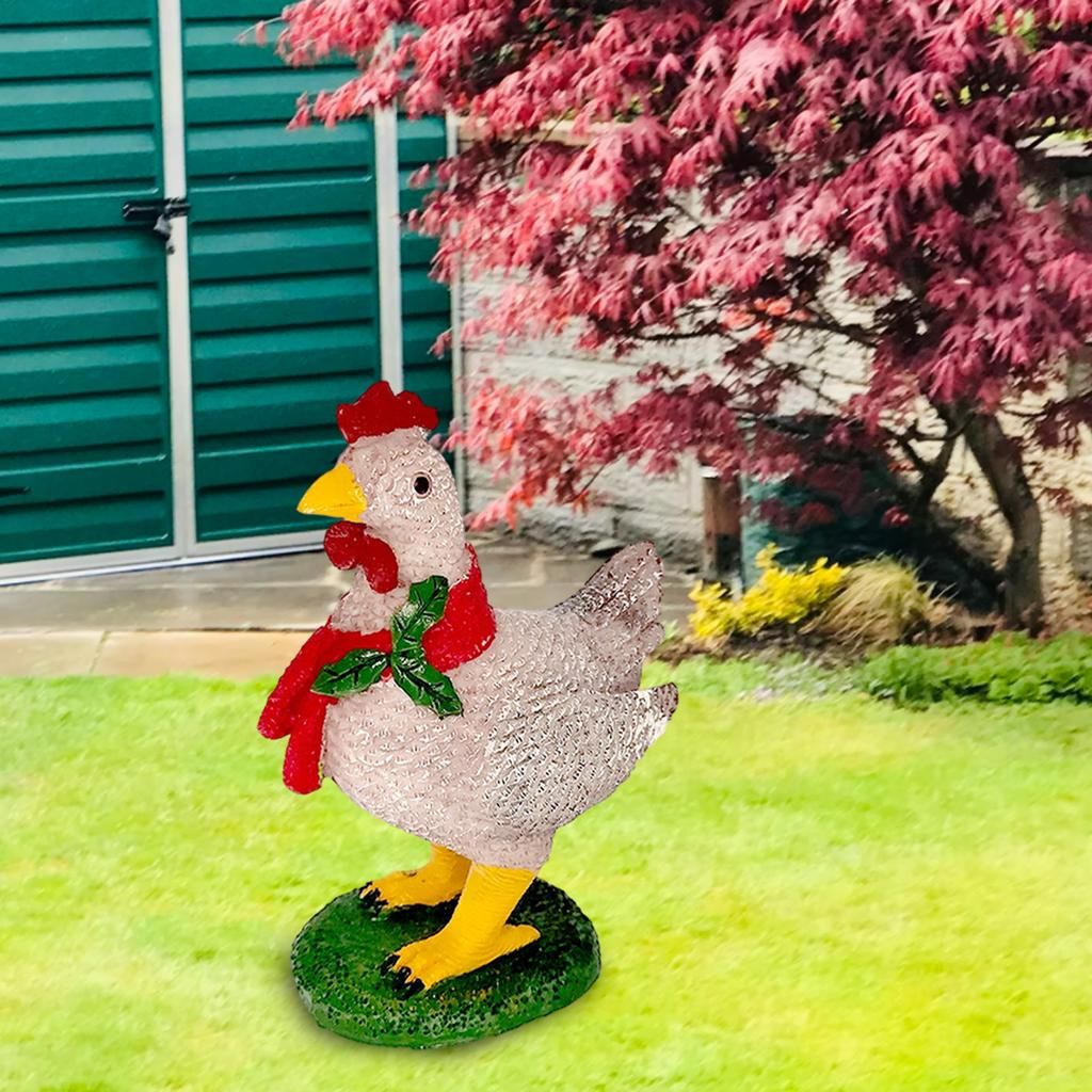 Realistic and Exquisite : The Light-Up Chicken With Scarf is made of resin, the delicate design uses different colors for the mouth, eyes, combs, legs and body of the chicken, which can be distinguished more clearly, making this light chicken decoration look lifelike and very lifelike.
