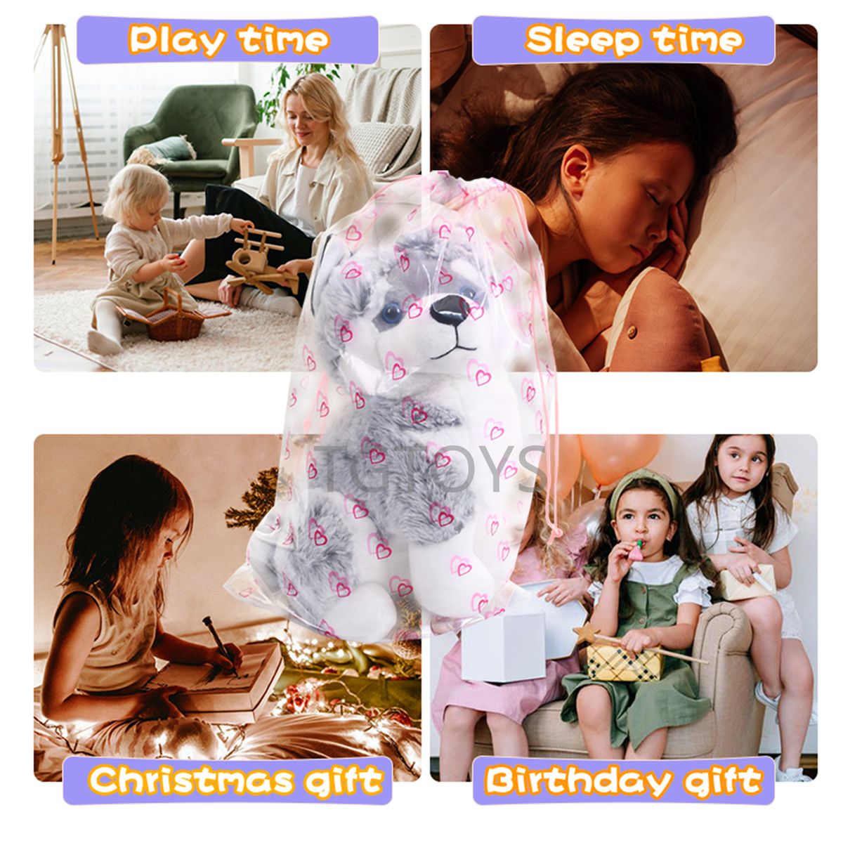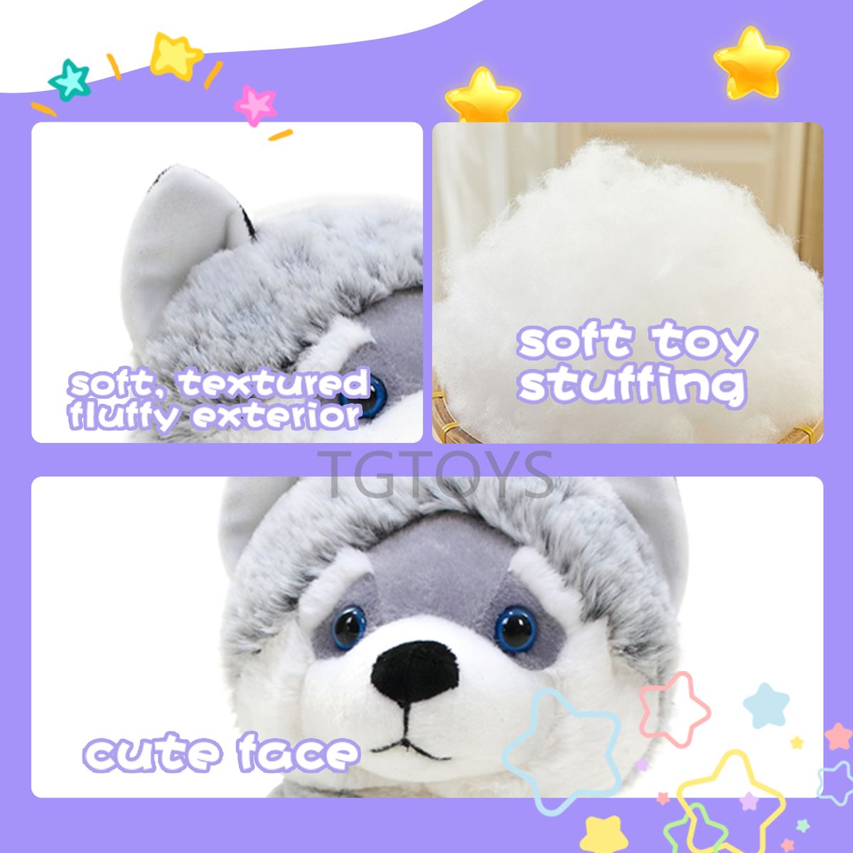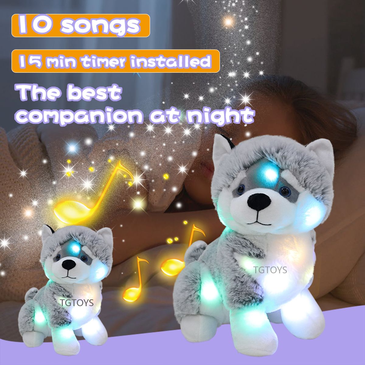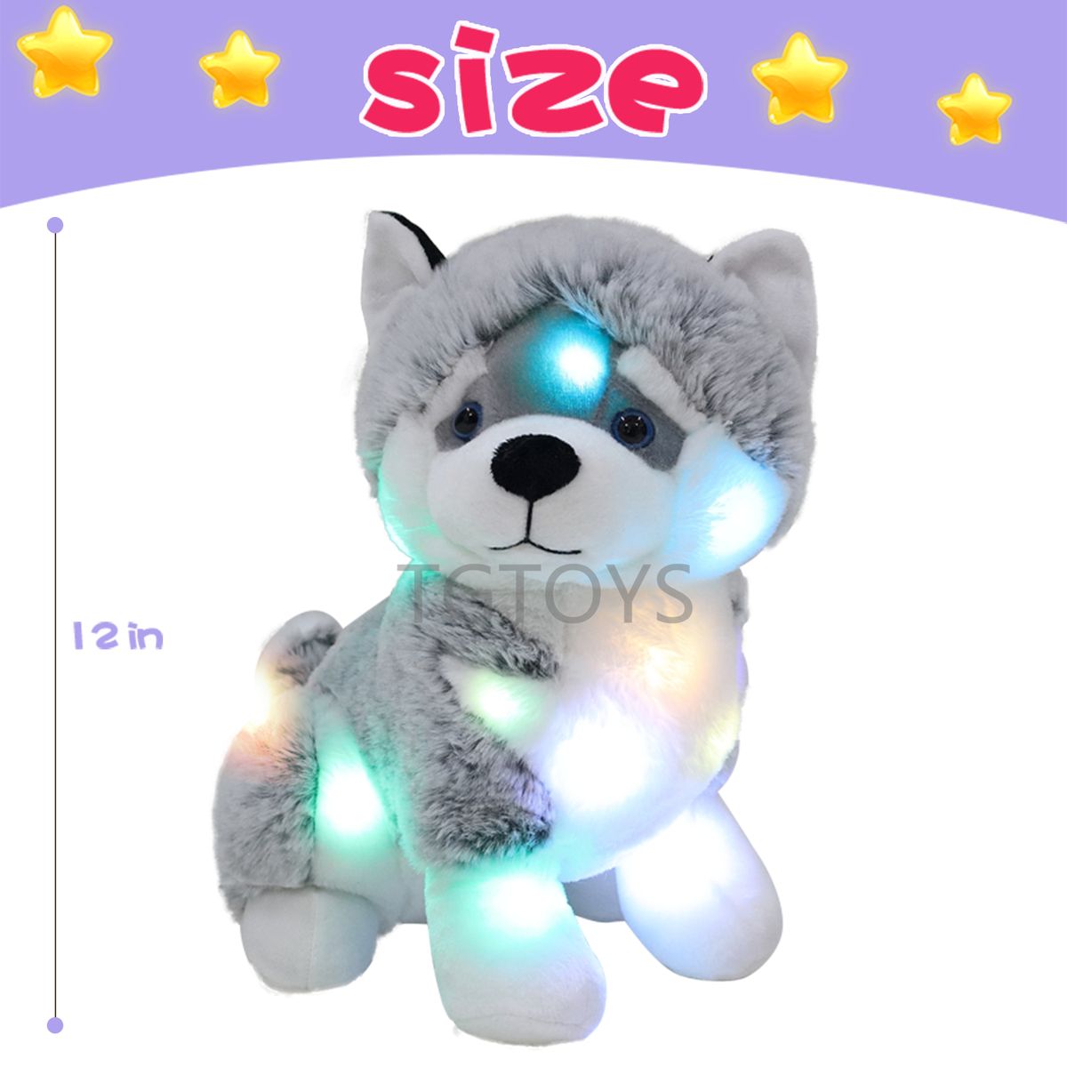 1X TGTOYS Light up Husky Stuffed Animals for Kids Musical Dog Plush Toy with Night Light Puppy Stuffed Animal for Girls Babies 12\