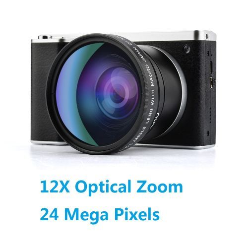 1X Lightdow 4.0" IPS Touch Screen 24MP 12X Optical Zoom F3.2-6.5 Digital Camera Video Recorder with 52mm Wide Angle +Macro Lens